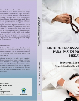 JUDUL : METODE RELAKSASI (TERAPI DZIKIR) PADA PASIEN POST VENTILASI MEKANIK PENULIS : Setiyawan, S.Kep., Ns., M.Kep. HALAMAN : vii + 71 ISBN : 978-623-8050-51-2 DESKRIPSI BUKU Relaksasi adalah tehnik pengelolaan diri berdasarkan aktivitas sistem saraf simpatis dan parasimpatis. Ketika otot-otot rileks, maka akan menormalkan fungsi organ-organ dalam tubuh. Setelah seseorang melakukan relaksasi, dapat membantu… selengkapnya
