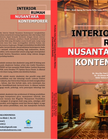 Melalui buku ini, kami ingin memperkenalkan konsep kearifan lokal yang dapat diintegrasikan dalam desain interior rumah modern, sehingga mampu mencerminkan identitas budaya sekaligus memenuhi aspek keberlanjutan dan inovasi. Penulisan buku ini adalah memberikan referensi komprehensif bagi masyarakat, dosen, serta mahasiswa desain interior Rumah Nusantara Kontemporer agar mampu memahami dan menerapkan prinsip-prinsip tersebut dalam praktik desain. Ruang lingkup materi mencakup karakteristik budaya, prinsip keberlanjutan, adaptasi tipologi tradisional, serta studi kasus yang relevan